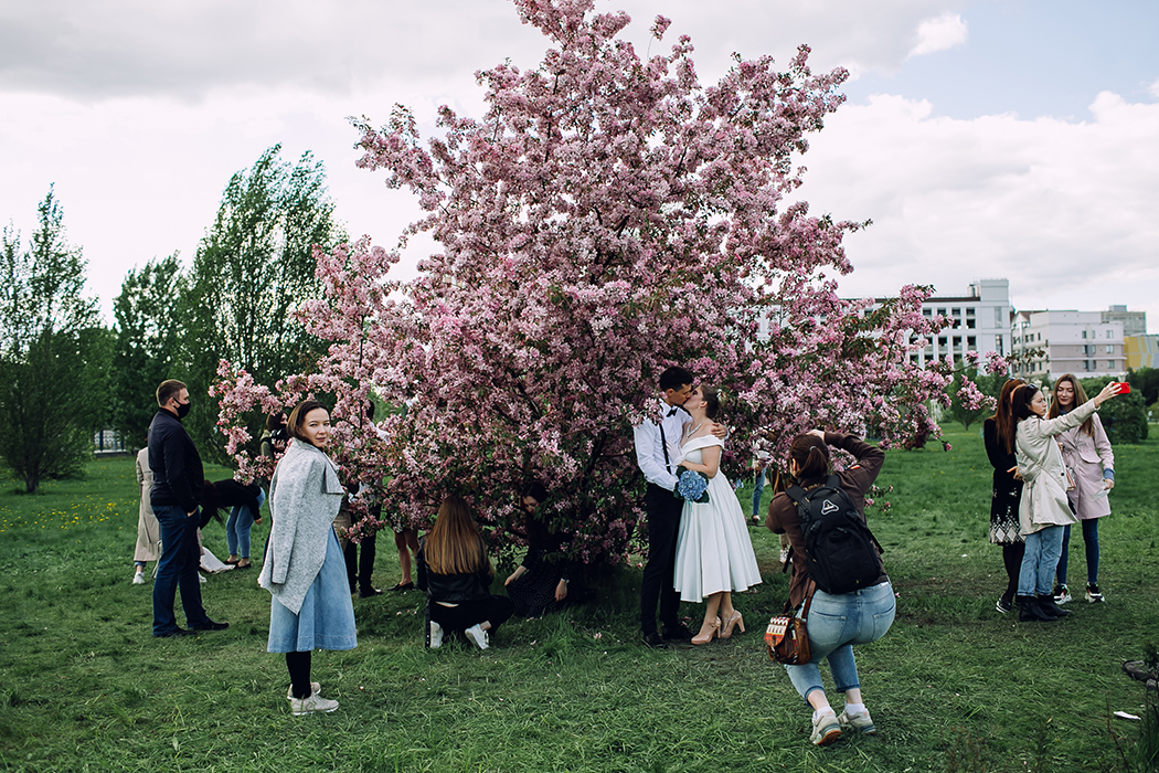 Расположенный через дорогу от нашумевшей набережной Кабана парк Тысячелетия выглядит на её фоне весьма непрезентабельно. Большую часть времени это общественное пространство пустует, потому что заняться там нечем: ни кафе, ни детских площадок, ни тенистых деревьев и лавочек под ними. Единственный момент в году, когда жизнь в парке кипит - цветение розовой яблони, рядом с которой казанцы устраивают фотосессии. Непонятно, кто опыляет цветки этого дерева, люди или пчёлы?