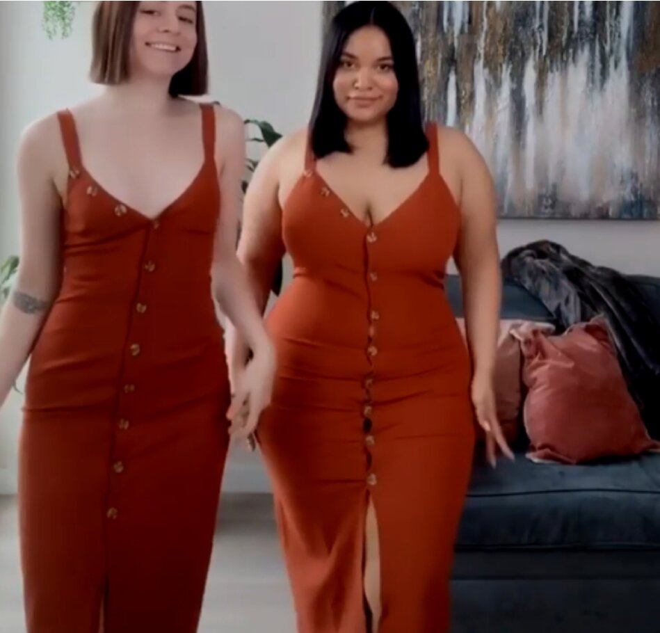 Это всегда очень интересно смотреть, как выглядит одинаковая одежда на двух девушка разного размера.