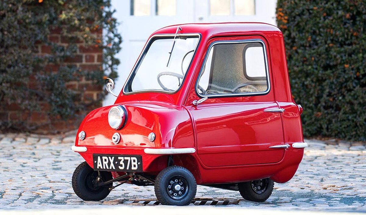 Современная экономическая ситуация и забота об окружающей среде способствует увеличению популярности небольших и экономичных автомобилей, таких как Volkswagen up!, Toyota iQ, и других. Самым маленьким серийным автомобилем в настоящее время считается автомобиль «smart fortwo», длина которого составляет 270 и ширина — 156 сантиметров. Как то я уже вас спрашивал с подвохом - Кто откажется от BMW? Там тоже была очень маленькая машинка. Но оказывается, что самый маленький в истории серийный автомобиль выпускался намного раньше, в начале 1960-х годов. И этим автомобилем является Peel P50, длина которого составляет 137 сантиметров, а ширина — 104 сантиметра, а весил он всего 59 килограмм. Название Peel переводится как нечто среднее между совком и лопатой, что, наверное, следует воспринимать в юмористическом ключе. Разгонялся автомобиль до 64 км/час. Интересно, что он не имел задней передачи, и поворачивать его приходилось вручную. Увы, проект очень скоро закрылся. В период с 1962 по 1965