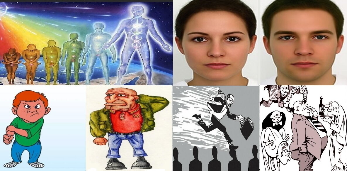 Каждый человек в естественном развитии множество раз последовательно проходит четыре различных периода, обозначаемых общими понятиями из четырёх частей системы языка, в которых более-менее развиваются все его качества. Часть вновь появившихся высокоразвитых человеческих качеств деградирует до слаборазвитых свойств, необходимых для использования в сложных условиях жизни. Образовавшиеся слаборазвитые человеческие свойства - это слаборазвитые реальности, необходимые для появления, в дальнейшем развитии, более развитых реальностей в виде высокоразвитых человеческих качеств. Естественное развитие людей похоже на строительство сначала проселочной дороги в индивидуальной последовательности развития, потом заложение гравийной основы для хорошей дороги, и только потом укладка асфальта на уже готовую дорожную основу, чтобы потом ежедневно по ней передвигаться к вершинам своего развития. Существование сторонников примитивных мировоззрений похоже на существование множества кооперативно взаимосвязанных замкнутых группочек умственно ограниченных обывателей, которые разделены по рангам привилегированности, и значительная их часть ведёт паразитический образ жизни. Мечтой молодых обывателей является попадание в самые привилегированные группочки, чтобы жить за счёт работы зависимых от них обывателей. Многочисленные прохождения всех четырёх периодов развития людей начинаются с образования человеческого зародыша в теле матери и, с постепенным замедлением, продолжаются до конца жизни. В начале жизни каждого человека соотношение высокоразвитых и слаборазвитых реальностей гораздо лучше, чем в конце долгой жизни. Максимальное воспроизводство самых высокоразвитых реальностей, обозначаемых общими понятиями из четвёртой части системы языка, в последовательности естественного развития, возможно только после собственной целеустремлённой революции, преодолевающей лень, застой, привычки, традиционный уклад жизни. Целью развития людей является возвышение их личностей над их организмами. Естественно, что не все обыватели на это способны, особенно сторонники примитивных мировоззрений, воспроизводящие и использующие преимущественно слаборазвитые реальности.