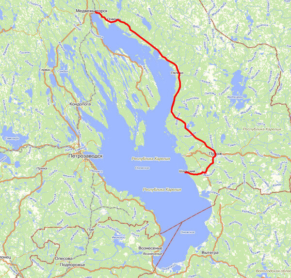 Встретились на выезде из Медвежьегорска на заправке ТНК и поехали в сторону Москвы. В это день мы хотели переночевать на месте самой первой ночевки, на Онежском озере.