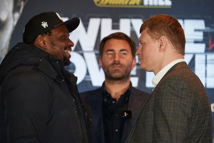 Промоутер Эдди Хирн объявил в пятницу, что Уайт (27-1, 18 Ко) и Поветкин (35-2-1, 24 ко) проведут бой 22 августа на территории штаб-квартиры Matchroom Boxing в Брентвуде, Англия. Бой Уайт-Поветкин, дважды откладывался из-за пандемии.