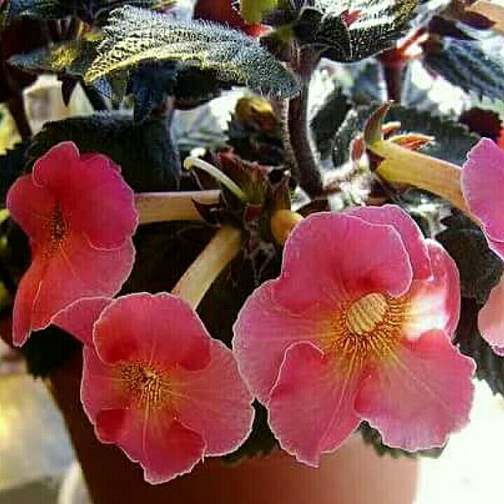 Красивоцветущее растение с цветами- колокольчиками всевозможных окрасок. Плюс Ахименеса в долгом цветении, которое длится с конца весны до середины осени. В зависимости от Ваших пожеланий Ахименес может быть ампельным растением, а можно обрезать и прищипывать побеги, формируя куст. Яркое освещение необходимо растению, но от палящих лучей его нужно притенять. Из-за недостатка освещения цветы поблекнут и длительность цветения сократится, также могут вытягиваться стебли. Лучшая температура весной и летом до двадцати пяти градусов, в период покоя температура снижается до пятнадцати градусов. Ахименес любит влажный воздух, но опрыскивать растение нельзя- это приводит к появлению пятен на цветах и листьях, загниванию. Можно поставить горшок с растением на широкий поддон с керамзитом и водой или разместить рядом ёмкости с водой. Пересыхания грунта допускать нельзя- прекратится цветение. Поэтому весной и летом грунт должен быть постоянно чуть влажным. Переливов также не стоит допускать, так