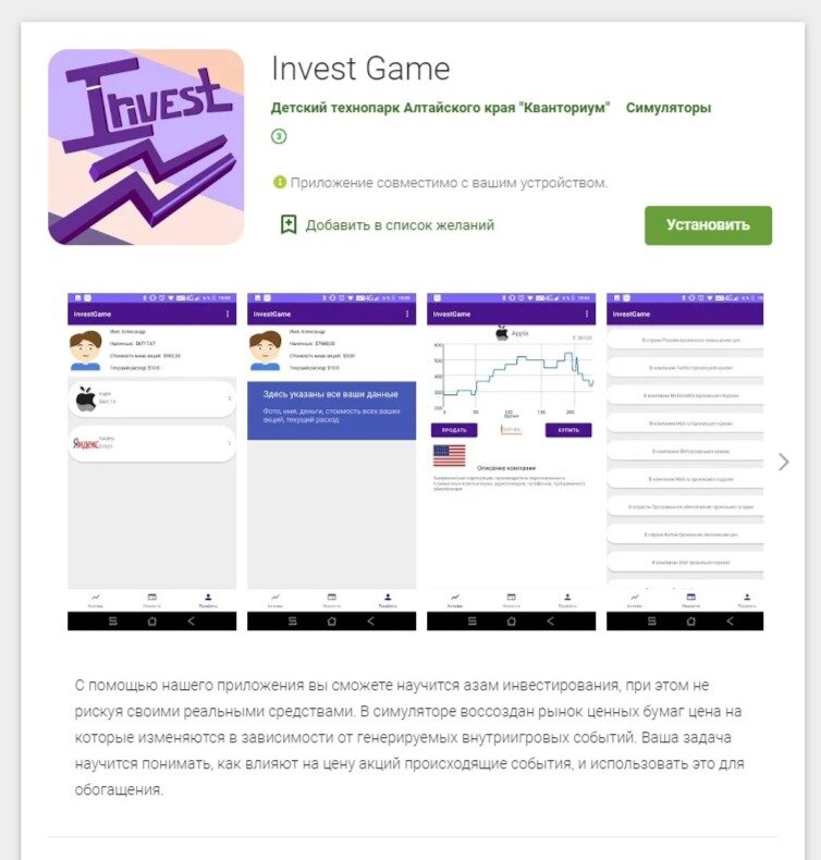 Команда доработала приложение и опубликовала его на GooglePlay! Скачивайте, играйте, развивайте свои инвестиционные навыки! Ссылка на приложение