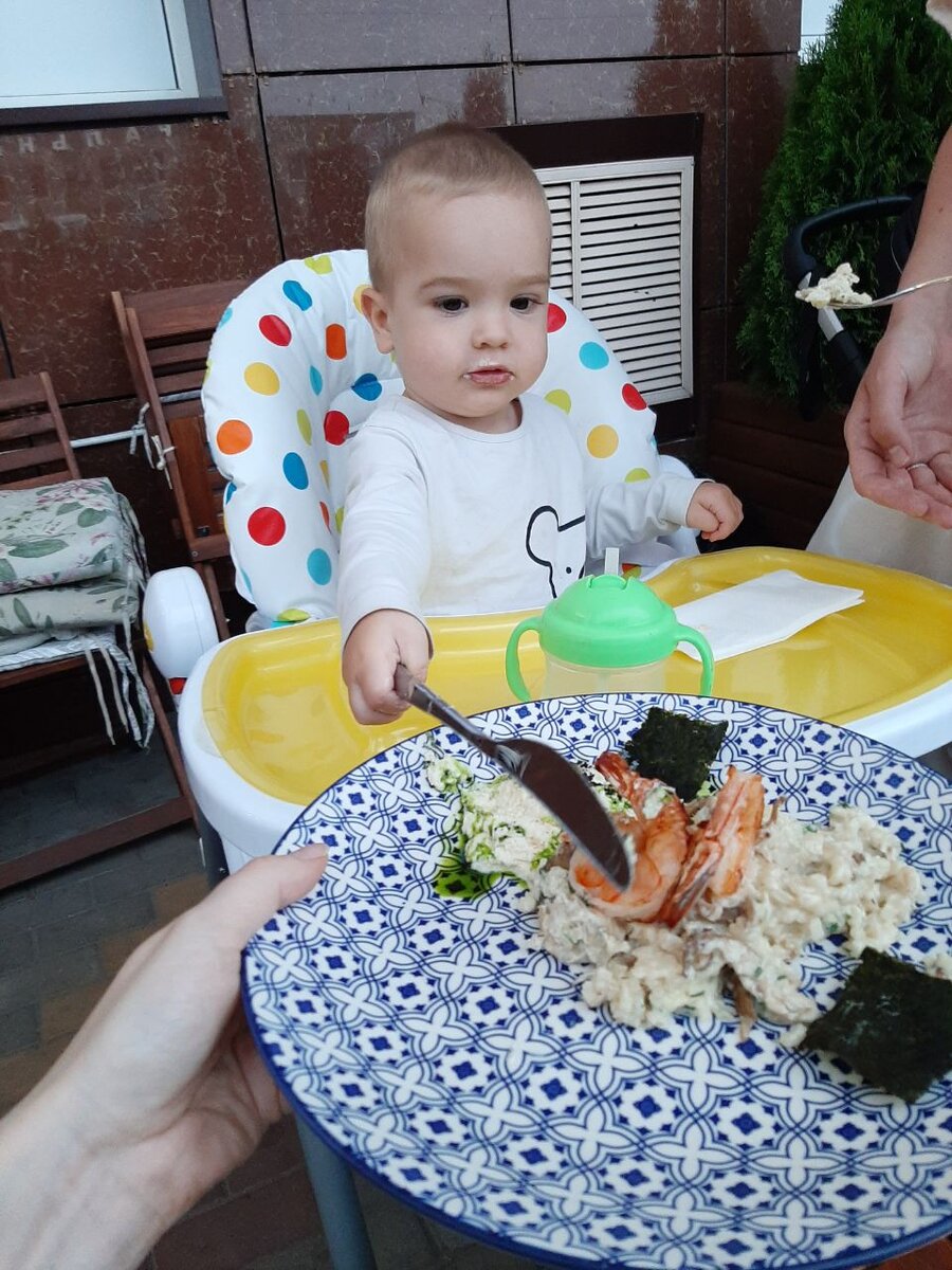 Ехать решили с двумя остановками. Изначально хотелось попасть в Дивногорье, но заповедник сейчас закрыт и мест в гостинице не оказалось. Первая остановка Лиски (Воронежская область). Там гостиничный бизнес не так чтобы развит, но мы нашли Три Звезды на ул.Донская, предоставляют детскую кроватку бесплатно, в номере ванная а не душ, и на этаже большая удобная кухня. В пяти минутах ходьбы небольшая детская площадка, а в десяти - автовокзал и видимо самое роскошное кафе города :) Поужинали там на веранде. И почему-то они не могли приготовить простые макароны с сыром ребёнку, пришлось выбирать из меню. Так Федя попробовал ризотто со сливочным соусом и креветки на гриле. Знаменитые Лискинские креветки..