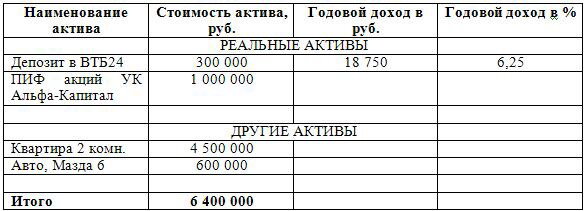 Наоборот, Вы платите квартплату 2 000 – 3 000 рублей каждый месяц. Но представьте себе, что у Вас нет своего жилья. Придется арендовать и платить уже по 20 000 руб. в месяц. Т.е. собственная квартира экономит 17 000 руб. Как говорится, сэкономил, значит заработал. Записываем стоимость всех активов, а по реальным активам добавляем размер годового дохода и процентную ставку, чтобы анализировать эффективность вложений. Опять же, всю информацию необходимо отразить на бумаге, заполнив таблицу: