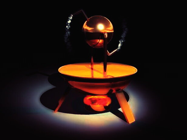 Вот забавный научный эксперимент. Это называется паровой двигатель Герона. Он назван в честь Герона Александрийского, который описал его еще в 1 веке нашей эры. По его теории, очень даже очень легко сделать паровой двигатель. Из двух отверстий выбрасываются маленькие струи пара. Эти струи обеспечивают движущую силу. Как же это можно сделать? Возьмем банку с любым газированным напитком, которая все еще запечатана, и проколим его иглой в середине банки с одной стороны. Когда вы делаете это, будьте готовы к брызгам. Затем переверните банку и дайте стечь. В зависимости от того, какой у вас напиток, встряхивание может привести к ее быстрому опустошению из-за большого давления внутри. Если там останется немного, то ничего страшного. Затем, используя ту же иглу, делаем отверстие на противоположной стороне. Вставьте иглу обратно и потяните ее вниз,как показано ниже- Затем поверните банку и сделайте то же самое для другой дыры. В результате у нас теперь есть отверстия , которые направят п
