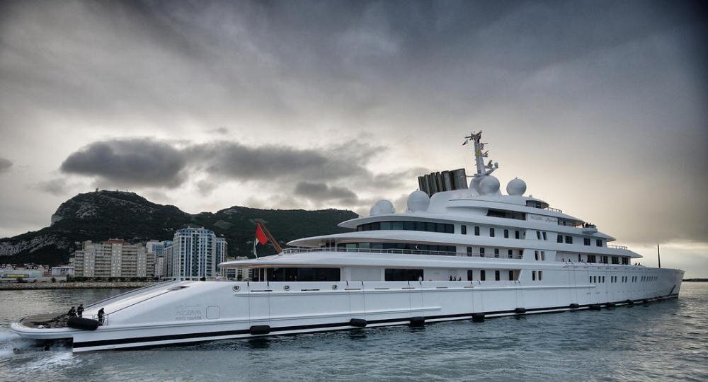Мега-яхта Azzam, построенная в 2013 году на германской верфи Lurssen, до сих остается самой большой в мире. Её длина составляет 180 метров. Строительство стального гиганта заняло 28 месяцев. Стоимость постройки составила 620 миллионов долларов США. Её размеры поражают. Только представьте: 180 метров – это два футбольных поля или 12 железнодорожных вагонов. При этом Azzam может легко разгоняться до максимальной скорости 30 узлов (55 км/ч). В этом ей помогают две газовые турбины общей мощностью 94 000 л.с., четыре водомётные установки и турбокомпрессорный дизельный двигатель Wärtsilä-Sulzer RTA96-C мощностью 108 920 л.с. (80 088 кВт). Это самый большой двигатель в мире: его длина – 27,1 м, высота – 13,4 м, вес – более 2 300 т. Изначально разработанный для контейнеровозов, он идеально подошёл для 180-метровой мега-яхты, чья ширина составляет 20 м, а расчётная максимальная осадка – 4,8 м. Можно не сомневаться, что при таких габаритах на борту мега-яхты осталось достаточно м
