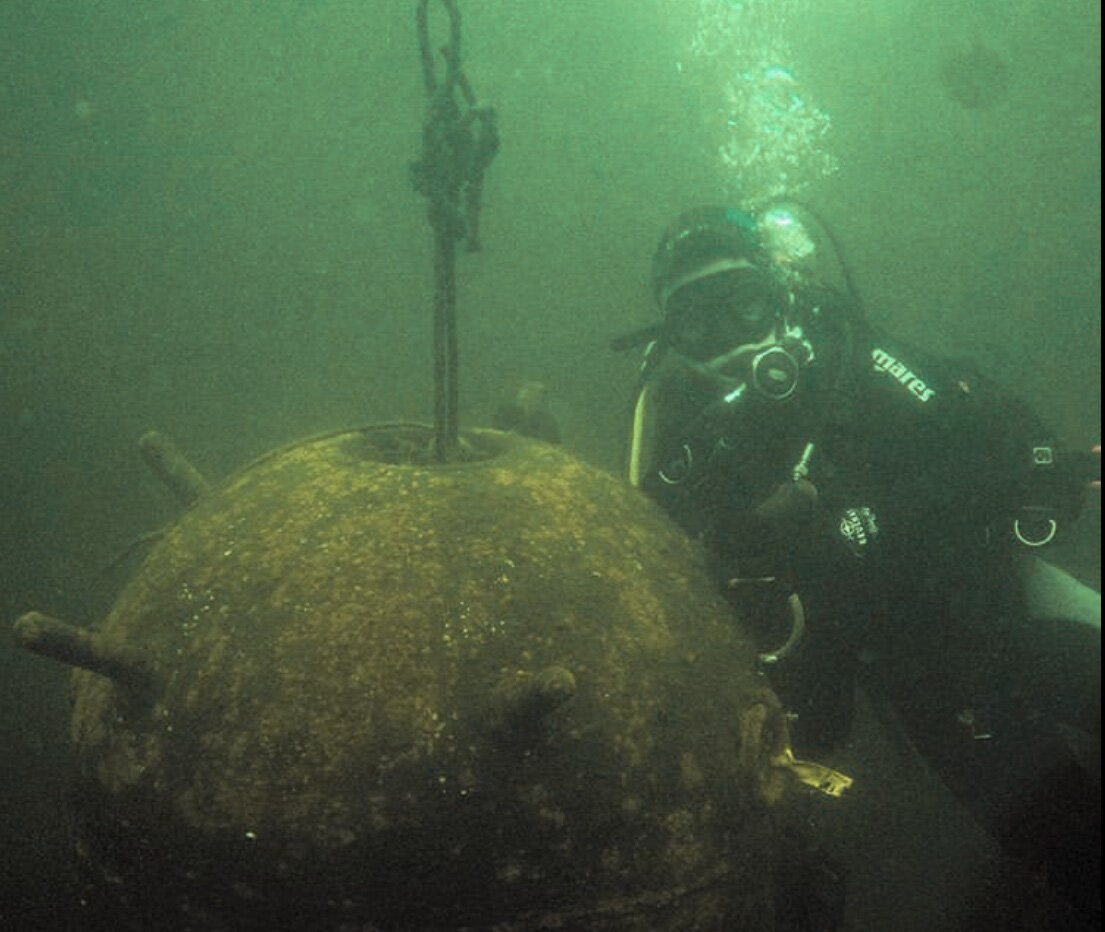 Но речь сегодня не об этом. По сценарию серии злоумышленники замаскировали свои дроны со взрывчаткой под глубинные мины второй мировой. Изготовить нечто подобное было просто. Прежде, чем снимать, решили провести испытание на Балтике. Конечно,