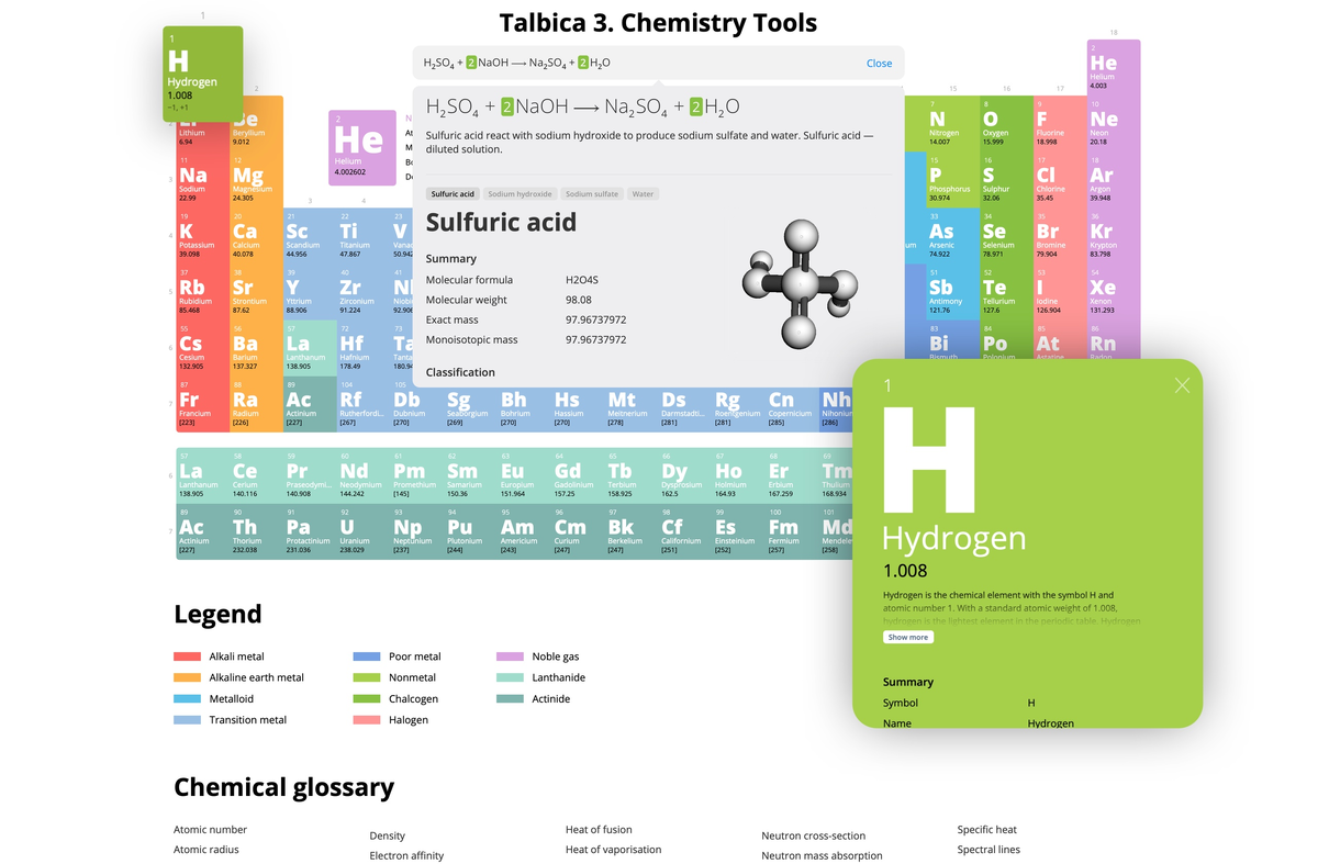 Мой хороший знакомый Андрей Маркелов сделал новое крутое приложение «Талбица», оно представляет из себя набор инструментов для химиков.