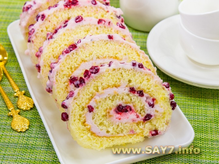 Горячий бисквит свернуть в рулет, вместе с бумагой для выпечки.
