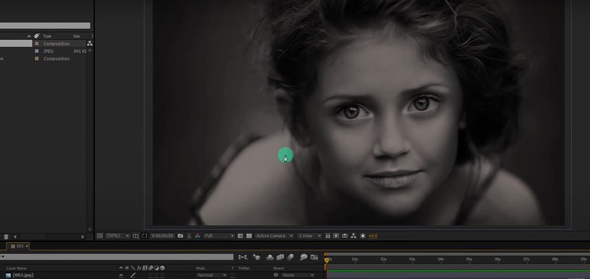 Создаем композицию в Adobe AE. Перетаскиваем туда наше изображение. Используя инструмент Pen Tool, рисуем прямоугольник вокруг нашей картины, это будем фоном, заливку делаем черным. И переименовываем данный слой как фон и помещаем его ниже нашей картины. Далее мы будем создавать так называемый Depth Mask. Меняя оттенки инструмента Pen Tool рисуем такую маску для тела, лица, глаз, носа. подбородка и волос, все делаем на отдельных слоях и с помощью разных оттенков черного и серого. Запомните, наше фото должно стоять на самом верху, а фон в самом низу. Теперь создаем Adjust Layer и ставим его выше всех слоев ( даже выше основной картины).