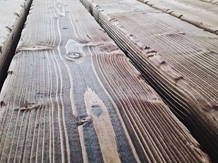 Защитная и красящая пропитка состаривает древесину на десятки лет. Тонировка морилкой красиво смотрится как сама по себе, так и с другими техниками. Например, с брашированием.