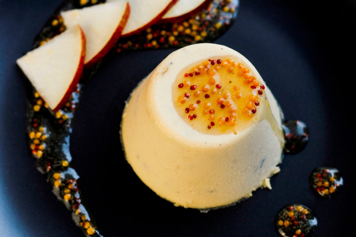 Помните Рокфора из «Чипа и Дейла»? Ну вот примерно так же можно отреагировать на сырное желе, если любишь сыр. Это действительно квинтэссенция сырного вкуса, как будто его выкрутили на максимум — самый сырный сыр из всех, что мы пробовали. Сочетание двух сыров делает вкус разносторонним, соус придает пикантную сладкую кислинку, груша — текстуру и хрусткость. Кроме того, такое желе дает возможность насладиться вкусом сыра с плесенью сполна: разбавленный чеддером и сливками, он не настолько интенсивный — согласитесь, в «чистом» виде много рокфора не съешь — и при этом абсолютно не теряет своей привлекательности. Попробуйте, не пожалеете!