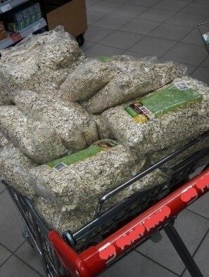 Мы закупили на ближайшее время немного крупы, но это капля в море расчитывая, например, на месяц. В сутки для каши у нас уходит по 8 кг крупы.