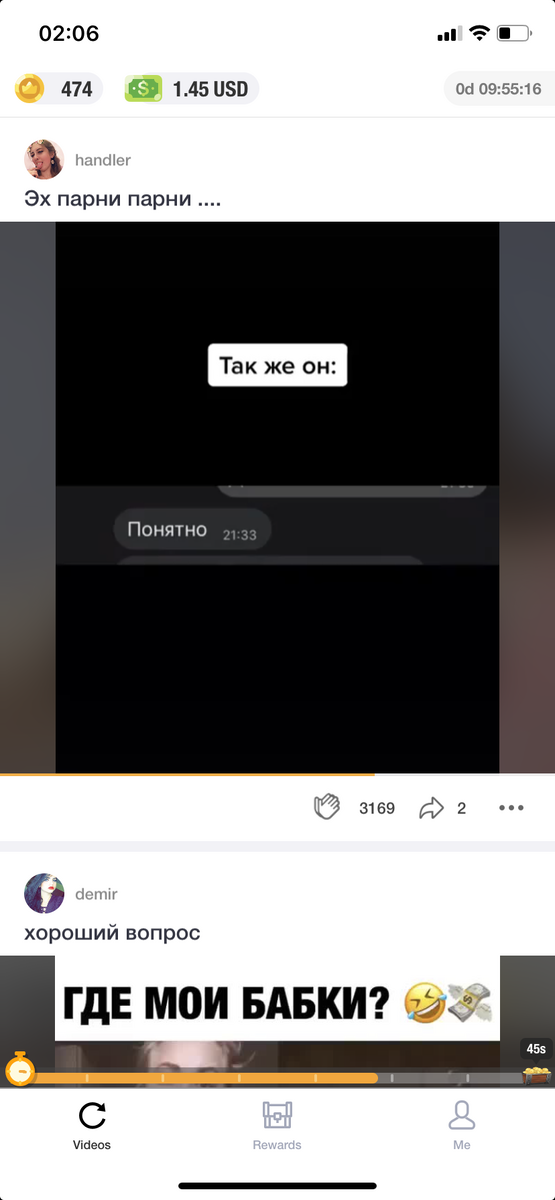 Приложение называется ClipClaps, ссылка: https://s.clipclaps.tv/i/3810259696 будет в коментариях Это альтернатива тик тока, вы просто смотрите видео и за них вам дают сундуки на фото внизу Так же здесь есть мини-игры В них можно тоже зарабатывать баксы 💵 Можно крутить колесо фортуны, 1 час один спин, в этой вкладке так же показываются кол-во ваших сундуков которые вы заработали на просмотре видео Вы можете попробовать себя в роли модератора оценивать видео, достойны ли они этого приложения.Это можно делать раз в 13 часов, там можно получить большое кол-во сундуков. Вроде все рассказал, удачи в погоне, за легкими деньгами 😉.
