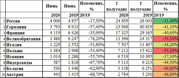 И по итогам июня, и по итогам полугодия на первом месте российский рынок грузовиков.