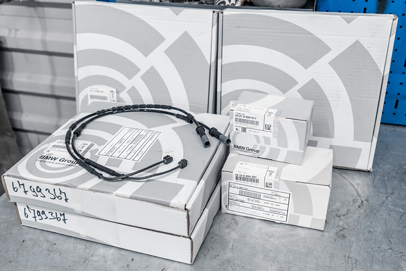 Концептуальные электромобили BMW i3 были разработаны не только с заботой об экологии, но и с учетом всех требований комфорта и безопасности. Тормозная система этих автомобилей достаточно надежна, рассчитана на различные виды нагрузок и обслуживается так же, как у BMW со стандартным оснащением. К нам в BMW-STO на обслуживание приехал BMW i3, так как индикатор на приборной панели сигнализировал о необходимости замены тормозных колодок. В ходе диагностики и осмотра выяснилось, что требуется замена всех тормозных колодок и дисков. Остаточная толщина деталей превысила допустимый уровень. Дальнейшее управление автомобиля в таком состоянии было бы опасным и непредсказуемым. При замене расходников были использованы оригинальные тормозные диски, колодки и датчики износа BMW Group. Все колеса были сняты с автомобиля, и специалист приступил к поочередной замене тормозных колодок и дисков. Все суппорта после демонтажа очищаются, направляющие смазываются специальной пастой. Профилактическая обработ