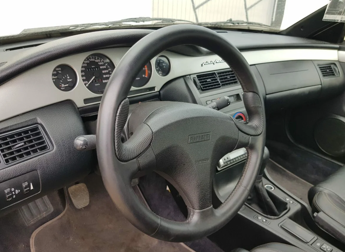 Интересные стилистические решения продолжаются и в интерьере салона, особого внимания заслуживает панель, которая как правило повторяла цвет кузова, плавно переходившая на дверные карты дверей. По меркам 90-ых автомобиль имел неплохое оснащение, включающее в себя кондиционер, ЭСП и электро регулировку зеркал, еще одной особенностью является полное отсутствие автоматической трансмиссии. Каждая из 72 тысяч выпущенных Фиат Купе имели механику с завода.