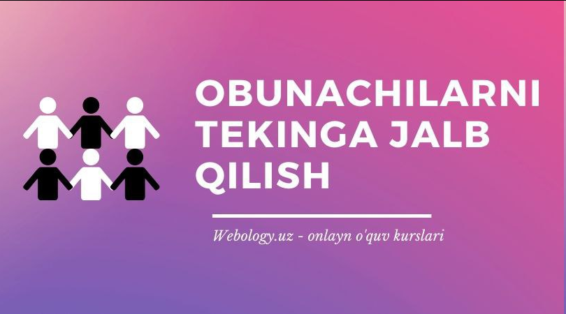 Kanalga obunachilarni jalb qilishning eng samarador yo`li bu – Reklama sotib olish. Lekin, byudjet cheklangan bo`lsa nima qilamiz ? Obunachilarni jalb qilishning tekin yo`llari ham bor. Keling ular bilan birma bir tanishib chiqamiz: INVAYT ORQALI Odatda telegram kanalga kontaktingizdan 200 kishini jalb qilsa bo`ladi. Bu sizga proektingizni start berishi uchun kichik yordam. Buning uchun kanalingiz infosiga kiring va Подписчики tugmachasini bosin. Yangi ochilgan oynadan Добавить подписчика ga kiring. REKLAMA ALMASHISH Telegramda kanalingiz tematikasiga yaqin boshqa kanallar bilan reklama almashsangiz bo`ladi. Bu jarayon Взаимопиар (ВП yoki VP) deb ataladi. Bunda, siz kanalingiz tematikasiga va statistikasiga (obunachilar soni, namoyishlar) yaqin boshqa kanalni topib, uning admini bilan reklama almashishga kelishasiz. Kerakli kanallarni : uztelegram.com va tgstat.ru saytlaridan topsangiz bo’ladi. Agar admin rozi bo`lsa, biron vaqtni tanlab, usha vaqtda kanallaringizga biri biringizni