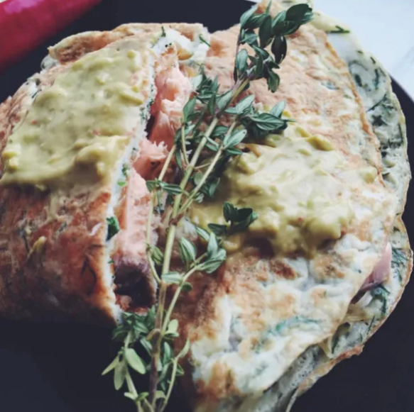 Очень вкусный вариант обеда или ужина. Всё в рамках ПП разумеется. Нам понадобится: - Красная рыба - 2 яйца - зеленушка - соль,перец по вкусу - сыр Приготовление : Взбиваем венчиком 2 яйца, добавляем соль, перец по вкусу. Обжариваем с двух сторон. Добавляем начинку, у меня красная рыба, сыр и зеленушка. Вы можете добавить другое.... к примеру: ветчину, грибы, шоколадную пасту ( не из магазина, где очень много калорий, а из магазина спортивного питания)