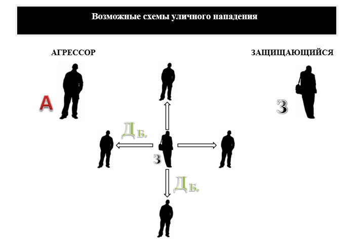 - Атака – если противник один и анализ, и оценка ситуации говорят о повышенных шансах положительного результата при самозащите, то можно превентивно атаковать.