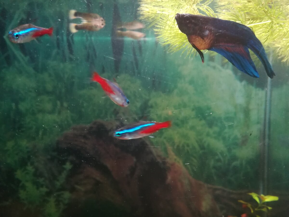 Достался нам в мае бесхозный аквариум. «Судьба»,- подумали мы, и решили рыбок завести. Прочитали в Интернете всё, но почти всё без опыта- пустые слова. Пошли в зоомагазин. В посёлке он один. И чего в нём только не было! Ничего в нем, можно сказать, не было: гуппии и два петушка в пластиковых стаканах, синий и красный. Тогда ещё канарейка там была жива… Купили синего и двух гуппий. Стала мутнеть вода - стали подменять воду, пытаться поймать зыбкую грань между перекормом и голодом. В магазин привезли неонов- завели стайку. Кума привезла водорослей и цветных камешков. Вроде всё устроилось, но тут начала котиться гуппия. Раз в неделю. Мальков жрут все. Ловлю их сачком прямо от роду, сажу в банки. Компрессоров нет. Ношусь с банками, нянчу. Наконец понимаю- это беспредел безумный! Убеждаю куму, что ей очень нужны гуппии, и вручаю их целую банку. Но несколько мелких паразитов заныкались под камнями! Теперь уже подросли, скоро котиться будут… Купили улиток. Одна шикарная просто!- размер