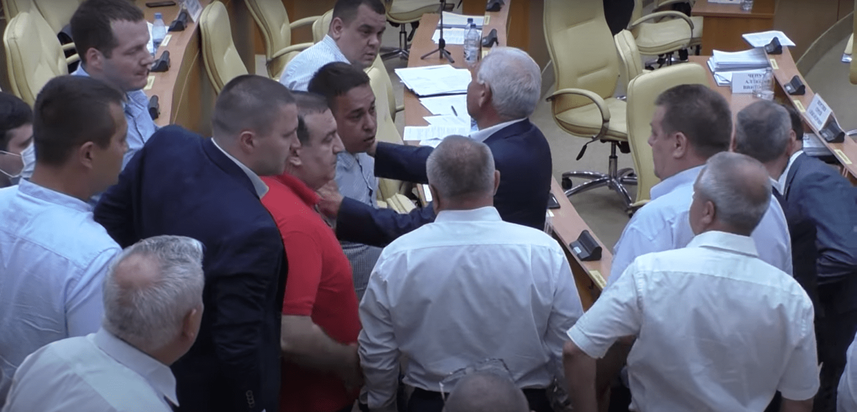 На заседании Законодательного Собрания Ульяновской области депутаты от «Единой России» совсем «съехали с катушек». Всё произошло при обсуждении вопроса, на котором г-ну Сурайкину отводилась роль мнимого защитника советских символов. Лицемерная политика губернатора по отношению к советскому прошлому не может не вызывать возмущения. Александр Чепухин, увидев плакат, обозначающий тесную связь псевдокоммуниста и губернатора просто взбесился и накинулся на депутата КПРФ Рамиля Хакимова. В ходе инцидента, коммунист получил травму глазного яблока. От нескольких единороссов исходил запах алкоголя. Затем г-н Чепухин оказался в 307 кабинете, где он курил сигарету при сотрудниках полиции. Рядом с ними располагался министр Неробеев и просвещал сотрудников полиции о том, что в кабинет нельзя допускать «посторонних». На вопросы депутатов КПРФ полиция отказывалась отвечать и просто игнорировала их.