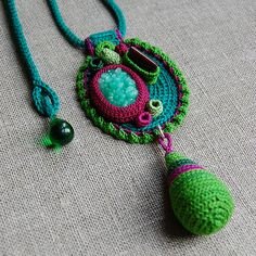 В 2012 году я стала пользователем социальной сети Фейсбук и впервые увидела вязаное крючком украшение в профиле своего друга. Кулон мастера Elin Thomas произвел на меня неизгладимое впечатление.