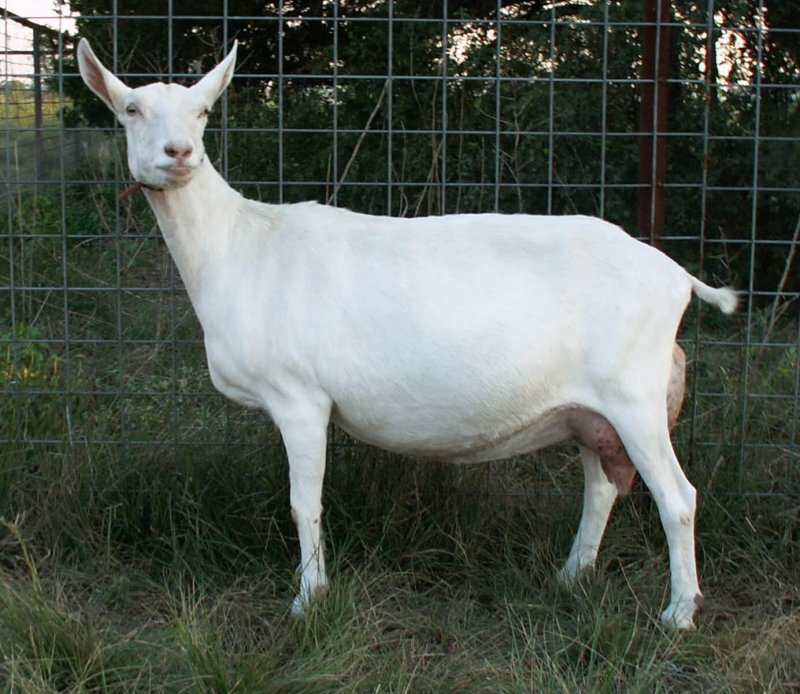 Зааненская порода коз давно считается одной из самых удойных. Комолых красавиц содержат как на частных подворьях, так и в фермерских хозяйствах. Продолжительность лактации у зааненок дольше, чем у других пород, и молоко они дают очень вкусное, не имеющее специфического запаха. Козликов откармливают на мясо, в процессе откорма их живой вес может достигать 90-100 килограммов. Простота содержания делают зааненских коз желанными на каждом подворье. Что именно требуется знать об этих козах, чем их кормить и как разводить мы вам сейчас и расскажем. 1. Зааненская коза, описание породы Животное крупное, рост в холке достигает 90 см. Телосложение крепкое, ноги длинные и сильные. Спина ровная, без провиса. Окрас короткой, плотной и блестящей шерсти белый. По стандарту породы козы комолые, у козлов допустимы рога. На шее кожаные отростки в виде длинных капель, которые называются серёжками. Вымя крупное, из-за его размеров задние ноги зааненок приобретают косолапость. Дневной удой может составлять