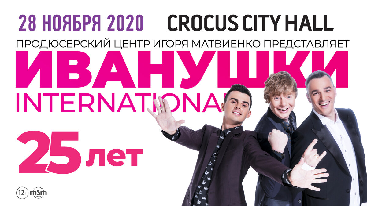 Иванушки INTERNATIONAL отметят 25 ЛЕТ 28 НОЯБРЯ 2020 в CROCUS CITY HALL В начале карьеры у «Иванушек» спрашивали: «А как вы себя видите через пять лет?» «Сменим название на «Иван Иванычи», - отшучивались они. Невероятно, но факт – 28 ноября 2020 года в Crocus City Hall состоится концерт, посвященный 25-летию группы «Иванушки INTERNATIONAL». «К 28 ноября мы готовим концертную программу - шоу, где прозвучат полюбившиеся всем песни в нашем исполнении и в исполнении наших звездных гостей. Мы хотим сделать настоящий праздник для себя, для друзей, а главное - для наших поклонниц и поклонников. Будет круто – отвечаем!» - добавляет Кирилла Андреев. На вопрос журналистов, в чем секрет молодости группы, новый солист Кирилл Туриченко со смехом отвечает: 'Во мне!' А если серьезно, 'Иванушек' слушали 25 лет назад, слушают сейчас и, я уверен, будут слушать спустя много лет». Об «иваномании» в 90-х ходят легенды. «Утро начиналось с того, что в девять часов пятьдесят девочек кричали под балконом: