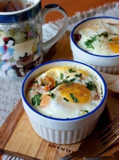 Итого на 100 грамм 115 ккал Б/Ж/У 11.6 / 6.6 / 1.7 ✅Ингредиенты на 2 порции: - 100гр любой рыбы, в нашем случае семга - 1 небольшой помидор - 1 ст.л. нарубленной зелени петрушки - 4 яйца - соль и черный молотый перец по вкусу ✳️Приготовление: Готовим рыбку на пару и даем остыть. Помидор нарезаем на мелкие кубики. Кладем в формочки для запекания. Остывшую рыбу тоже рубим и укладываем в формочки. Добавляем зелень и вбиваем по 2 яйца. Солим и перчим. Ставим в разогретую до 200 градусов духовку и запекаем, пока яйца не схватятся, около 10-15 минут. Подаем немедленно.