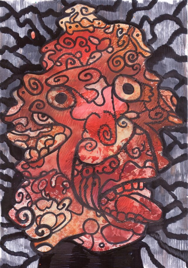 Cardboard, wax pens, iron, black marker and a bit of nonsense.