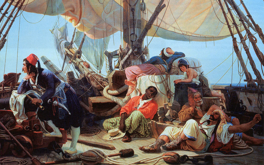В качестве удилища могли использоваться пушки или деревянные реи. Если рыбы было мало, а есть хотелось всем, драка была неизбежна.