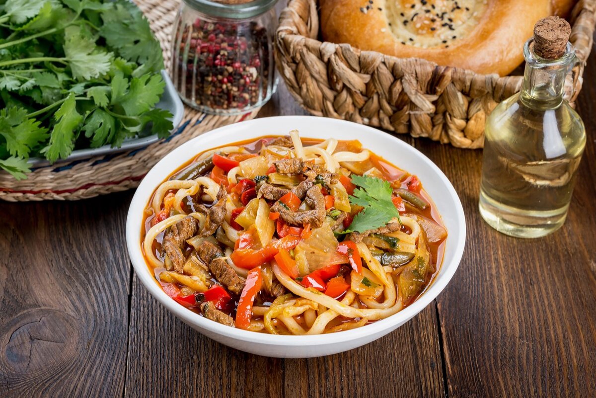 - Этап 13 - Заранее отварите лапшу , выложите в тарелку, сверху положите мясо с овощами и залейте бульоном. Приятного аппетита!