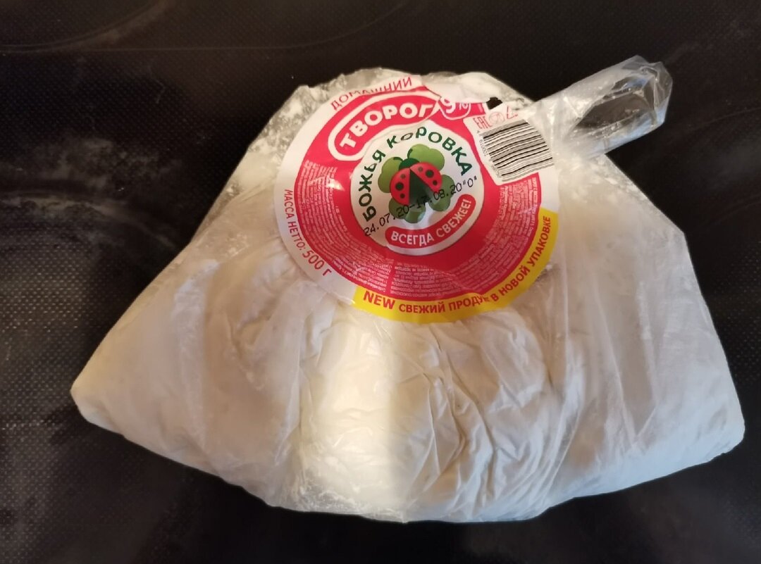 У нас такой творог продается в уже расфасованном варианте, каждый пакет весит 500 гр, а стоит при этом всего 88 рублей. Это прямо-таки низкая цена, поэтому и возникает много вопросов относительно качества, а в магазине еще и табличка висит, мол, продукты без заменителей молочного жира. Признаться, мне этот творог часто хвалили, я только поэтому и взяла его.