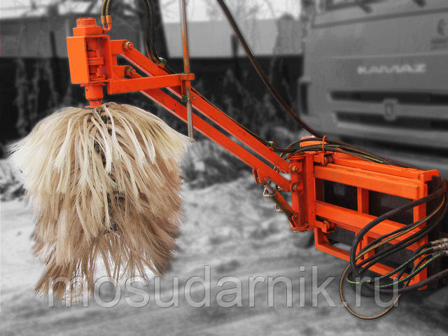 Технические характеристикиДиаметр щетки, мм900Высота, мм800Высота обрабатываемой зоны, мм250 ― 1500Рабочая скорость до, км/ч10Частота вращения, об/мин300Вылет щетки в рабочем положении за габарит машины направо (налево), мм1200Масса щетки с элементами крепления, кг340