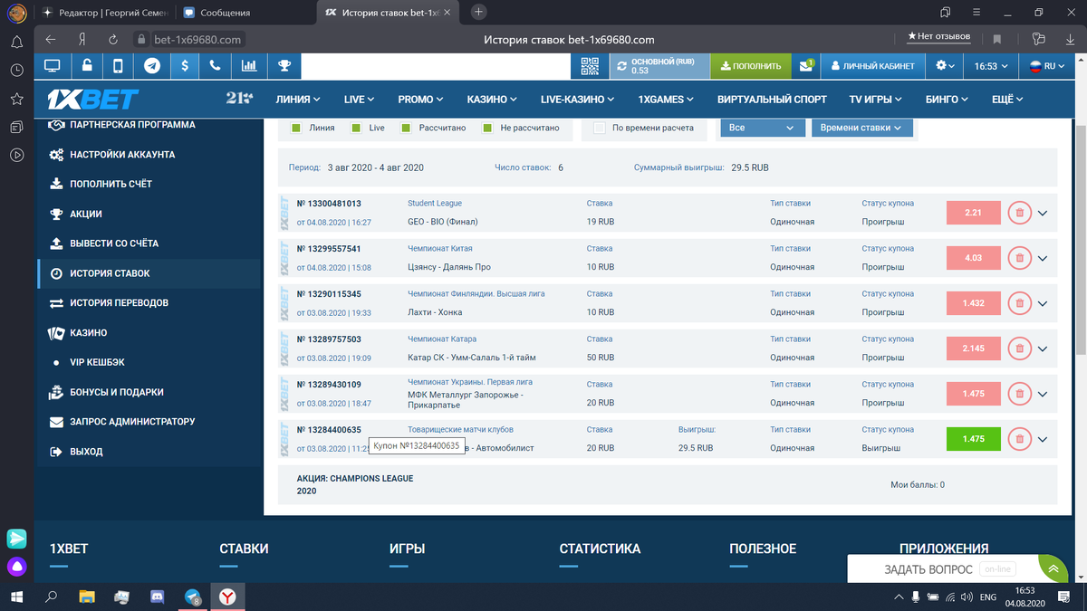 Пробую себя в ставках
