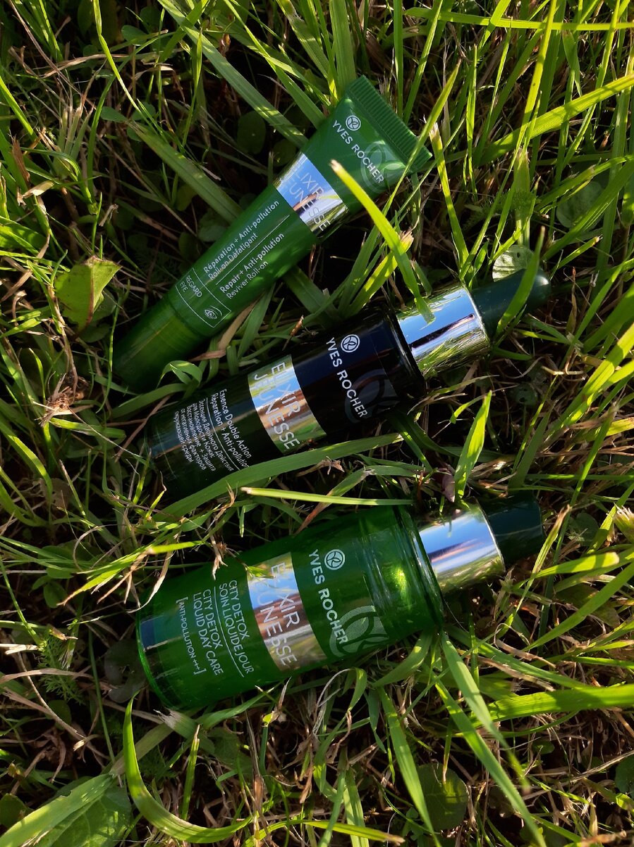 У Ив Роше мне полюбилась линейка Elixir Jeunesse - с детокс эффектом. От производителя: экстракт Афлои борется с катализаторами старения (негативным загрязняющим воздействием окружающей среды, синим светом гаджетов, ультрафиолетом, усталостью и стрессом), активизируя системы естественного восстановления* кожи и ее защитные* функции. Я использовала 2 средства: эссенцию, концентрат + роликовый гель для зоны вокруг глаз.