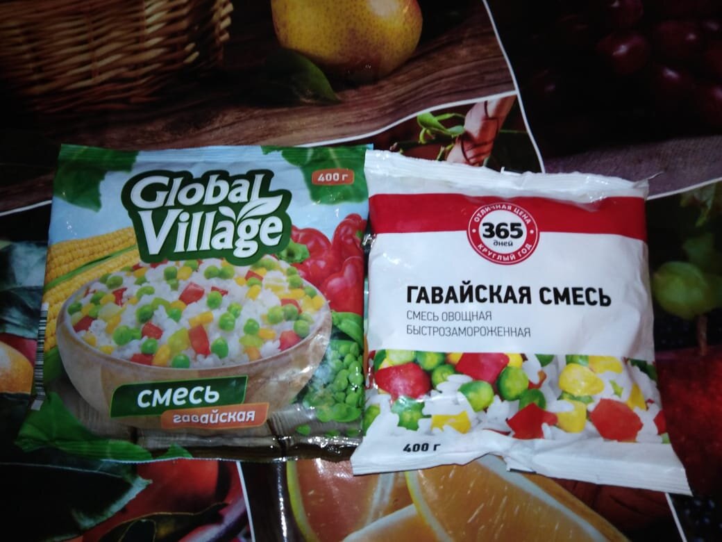 Всем, привет! Так получилось, что в морозилке одновременно оказались гавайские смеси от разных производителей. Решили сделать из них гарнир. Смотрим какой из них был лучше испытуемые - Гавайская смесь от "Пятерочки" за 89,99 рублей и смесь "365" дней за 54,99 рублей Сразу видим, что в более дорогом продукте меньше риса и больше овощей вид более симпатичный. Но здесь к минусам можно отнести качество самих овощей, видно, что они не очень свежо выглядит Здесь, конечно, овощи смотрятся лучше, хоть их и меньше. На вкус они получились одинаково, так что переплачивать смысла нет... Всем спасибо за просмотр, надеюсь эта статья была полезной. Если понравилось, ставьте палец вверх, подписывайтесь на канал. Здесь вы найдете интересные кулинарные решения, полезные советы, обзоры на известные сериалы и даже статью про заброшенный город)