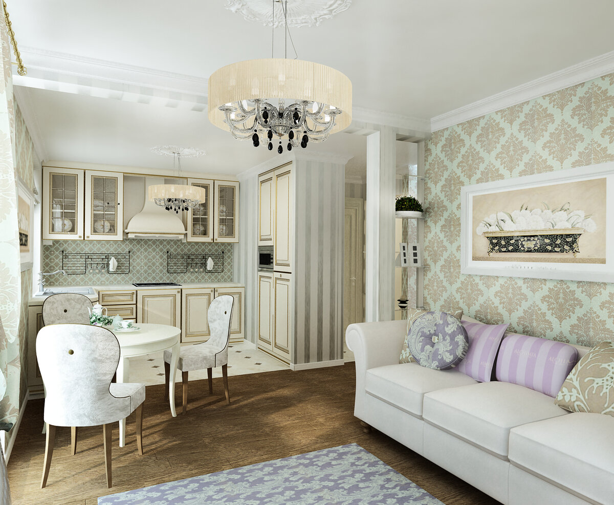 Коттедж в поселке «Новая Проба» (Всеволожский район Ленинградской области), проект Вероники Мартюшёвой, дизайнера интерьера, студия Easy Design. Небольшая площадь помещения не стала препятствием для реализации идеи объединения кухни и гостиной. На кухне и в советское время не только готовили, обедали и мыли посуду, но и засиживались по вечерам с гостями и домочадцами. Возник даже такой термин – «кухонные посиделки». И в наше время на фоне изобилия электронных средств коммуникации особенно ценным становится любая возможность для живого общения. Вариант объединенного пространства дает такую возможность не терять коммуникативной связи с семьей во время приготовления пищи и других «кухонных» дел. Еще один плюс объединения – рациональность и эргономичность при сервировке стола и подаче блюд: упрощается проход от плиты до стола, исключаются лишние перемещения и всегда помощники «под рукой». К тому же, телевизор в гостиной можно смотреть и за обедом, и во время готовки. Открытая планировка по