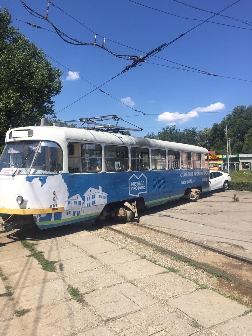 В Пятигорске трамвай разъехался на стрелке и врезался в припаркованный автомобиль «Тойота». Случилось на улице Февральской.