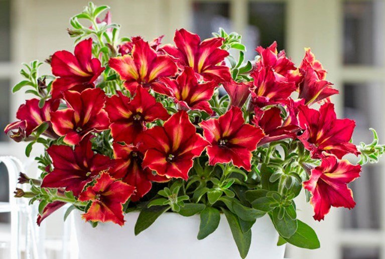 Петуния этого сорта отличается очень красивой и яркой расцветкой. Сам кустик компактный, шаровидной формы. Сильно ветвится и на каждой веточке распускается большое количество ярких цветочков. А еще этот сорт не только красив, но и очень устойчив к непогоде, цветочки не опадают и не портят свой внешний вид от ветра и сильного дождя.
