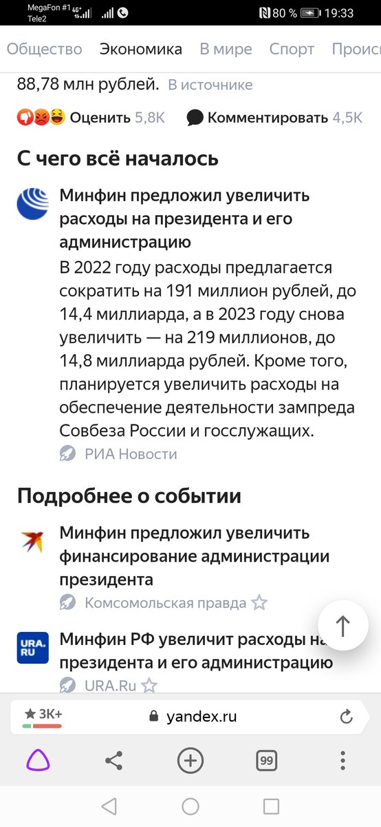 Листаю ленту, вижу ну просто "замечтательную" новость :минфин предложил увеличить расходы на содержание президента и его администрацию! Просто нет слов! На детей 16-18 лет денег нет, на поддержку малого бизнеса в период пандемии и после него - денег нет, на увеличение пенсий - денег нет, поднимают тарифы ЖКХ, выросла цена на газ, куда ни глянь - везде денег нет, но вы держитесь. Банки собираются изымать "спящие" вклады, и собираются наложить лапу на вклады, законность которых вы не сможете доказать, и прочее, прочее... И в это время, такое тяжёлое - давайте на правительство увеличим расходы... Где логика, где справедливость??? Просто нет слов.