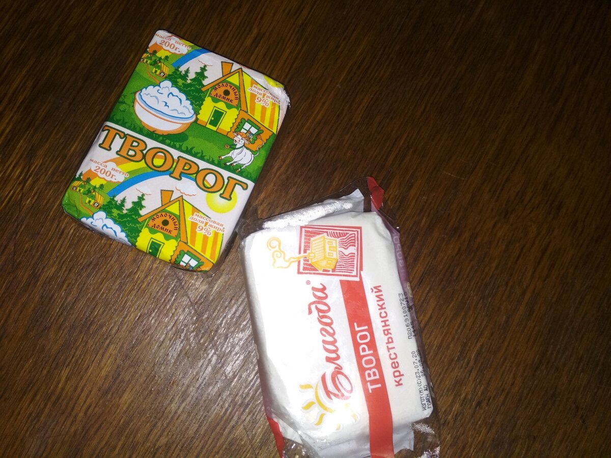 Решила поделиться своей версией приготовления этого блюда. А поводом послужила одна из предыдущих статей, хотя она была не на кулинарную тему, а сырники там фигурируют как иллюстрация к философской теме. Я предпочитаю готовить такое тесто, чтобы его можно было брать ложкой и класть на сковородку. Вариант, когда тесто вмешивается вручную, из него лепят сырники и обваливают в муке, кажется слишком тяжеловесным. В моем случае муки используется совсем немного, и основной составной частью продукта является творог) Итак, я беру пачку творога, щепотку соли, две чайных ложки сахара, одно яйцо. Смешав всё перечисленное, добавляю муки, вымешиваю ложкой до однородной массы. Строгих пропорций нет, так как творог бывает в пачках и по 180, и по 200 граммов, и он может быть разной жирности, плотности и т. д. На фото два из возможных вариантов. Я взяла пачку, которая слева, в ней 200 г. На плите разогреваю сковороду с маслом ( у меня подсолнечное рафинированное дезодорированное), выкладываю тест