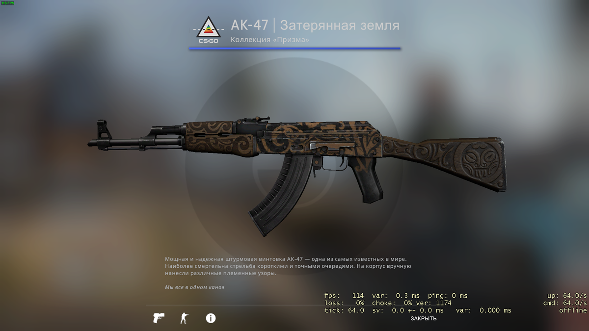 Один из старых скинов на АК-47. Качество- после полевых испытаний. Цена начинается от 488 рублей. Приклад, рукоятка и цевьё выполнены из ламината. Выпадает из " eSports Winter 2013".