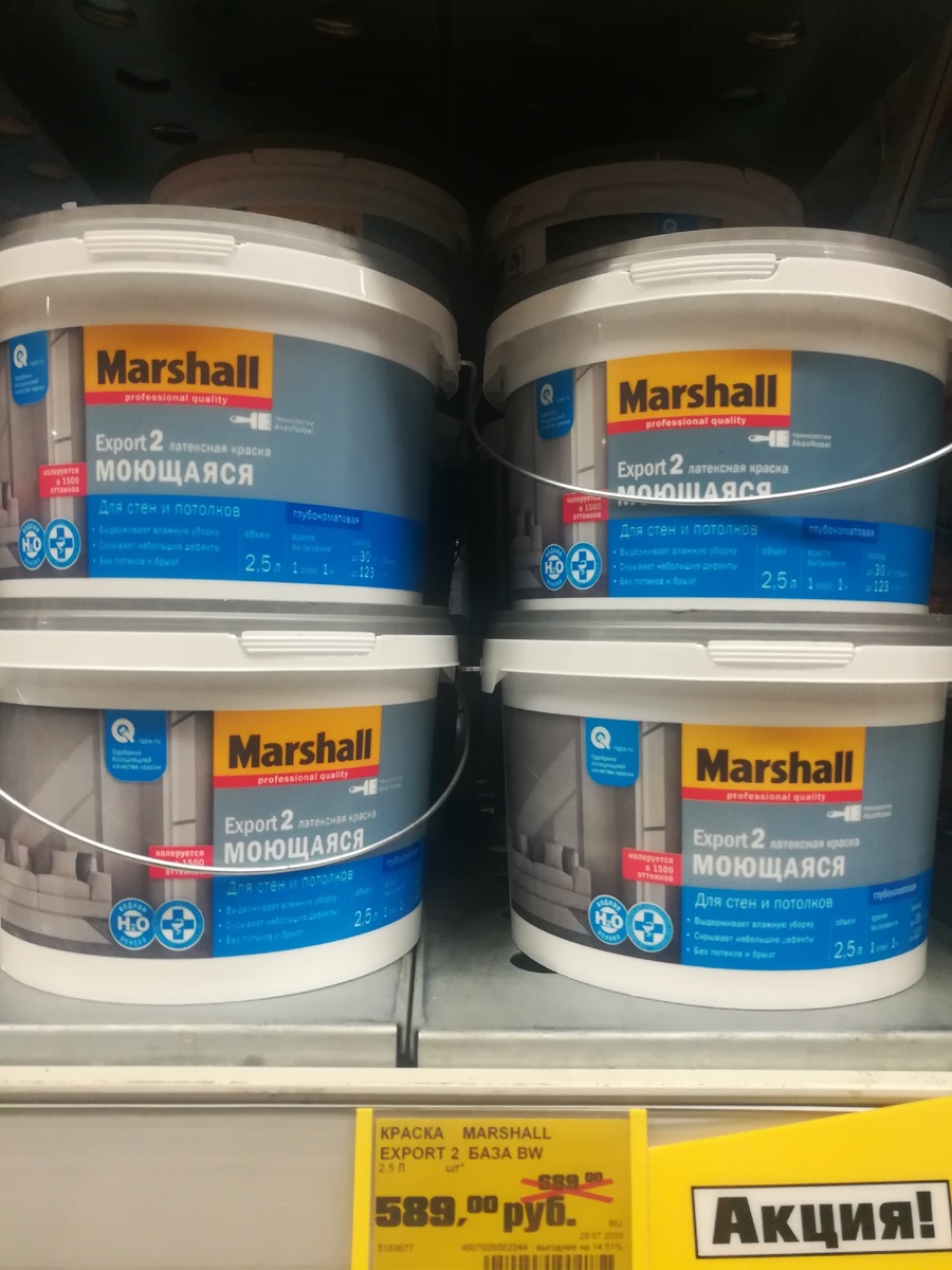 Всем привет. Продолжаю рубрику об акциях в строительных магазинах. Сегодня покажу вам товары из отдела ЛКМ по соблазнительным ценам. Краска Marshall Export 2 0,9 л: Цена - 269 рублей. До акции - 319 рублей. 2,5 л: Цена - 589 рублей. До акции - 689 рублей Краска Dulux Bindo 3 9 л: Цена - 2999 рублей. До акции -4099 рублей. Антисептик Husky Эффективная защита древесины до 5 лет. Полуматовый. Цвета: орегон, палисандр 9 л : Цена - 1299 рублей. До акции -1679 рублей. Антисептик Tikkurila Eko Wood 9 л. Цвета : тик, палисандр, бесцветный Цена - 2699 рублей. До акции - 3199 рублей Антисептик Original Pinotex 9 л. База под колеровку. Цена - 3899 рублей. До акции - 4879 рублей Спасибо за внимание! Ставьте палец вверх 👍 и подписывайтесь,оставляйте комментарии. До новых встреч.