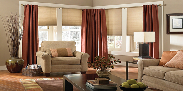 Оформление окон в гостиной или холле темно-оранжевыми шторами будет уместно на общем бежевом фоне. Стены могут иметь различные оттенки бежевого-от самых светлых до темных оттенков. Большую роль в сочетании играет цвет мебели в комнате. Если она имеет темно-коричневую обивку или деревянный декор,то эту гамму можно смягчить светло-оранжевыми шторами в сочетании с белыми или слоновыми шторами. Узоры и орнаменты штор также играют большую роль, они способны дополнить интерьер и внести новые нотки в дизайн. Узоры могут быть золотыми или светло-желтыми. Вариант, сочетающий шторы терракотового цвета с оттенками бежевого, может иметь следующие сочетания: Это далеко не все возможные сочетания сочетания данного оттенка штор с другими цветами. Такой вариант может подойти для оформления спальни, но тогда стоит сделать палитру более мягкой и постараться, чтобы в ней преобладали пастельные и теплые тона.