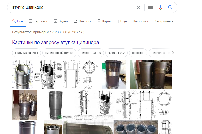 Набираю "втулка цилиндра". Вываливается такое: