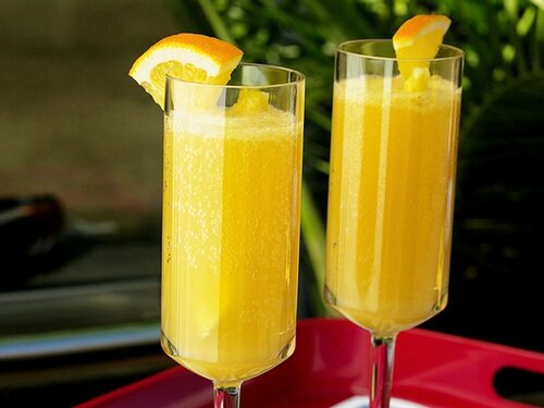 Коктейль с легким приятным вкусом, подходит для создания среди гостей праздничного настроения. Идеальное сочетание ликера, шампанского и сока. Состав: апельсиновый ликер – 20 мл; сахар – 1 столовая ложка; шампанское – 150 мл; апельсиновый сок – 50 мл. Приготовление: 1. Налить 10 мл ликера в небольшую мисочку, а сахар пересыпать в блюдце. 2. Опустить края бокалов в ликер, а потом в сахар. Должен получиться сахарный ободок. 3. Налить в бокал ликер (оставшиеся 10 мл), сок и шампанское, затем перемешать. 4. Украсить апельсиновой цедрой. По еще одному рецепту коктейль «Мимоза» делается из шампанского с апельсиновым соком, смешанных в равных пропорциях. Советую попробовать оба варианта и выбрать лучший.